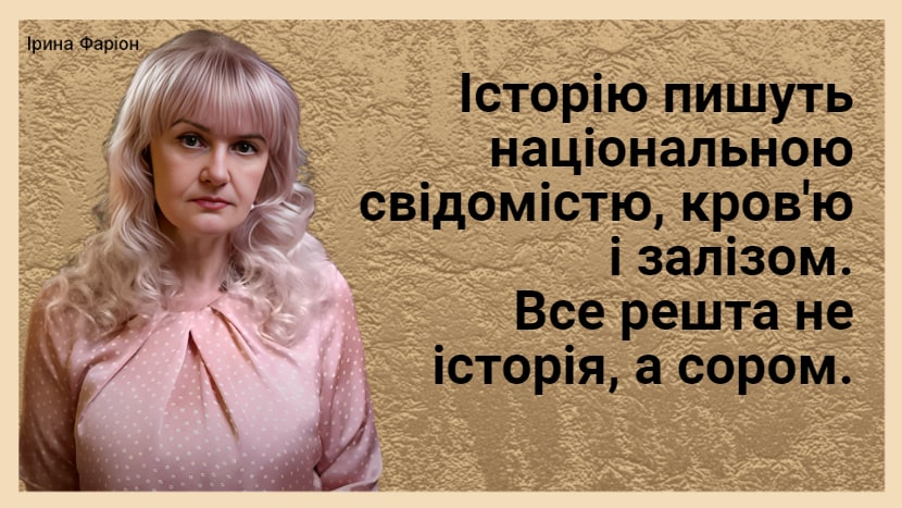 Історію пишуть національною свідомістю, кров'ю і залізом. Все решта не історія, а сором.